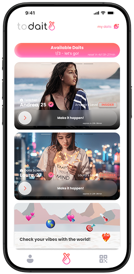 Dait es una app de citas que conecta personas compatibles y propone planes reales tras el match, para que las citas ocurran en el mundo real.